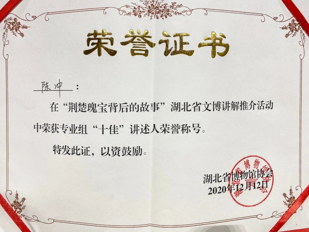 长江文明馆(武汉自然博物馆)讲解员陈冲获专业组“十佳荆楚瑰宝讲述人”称号