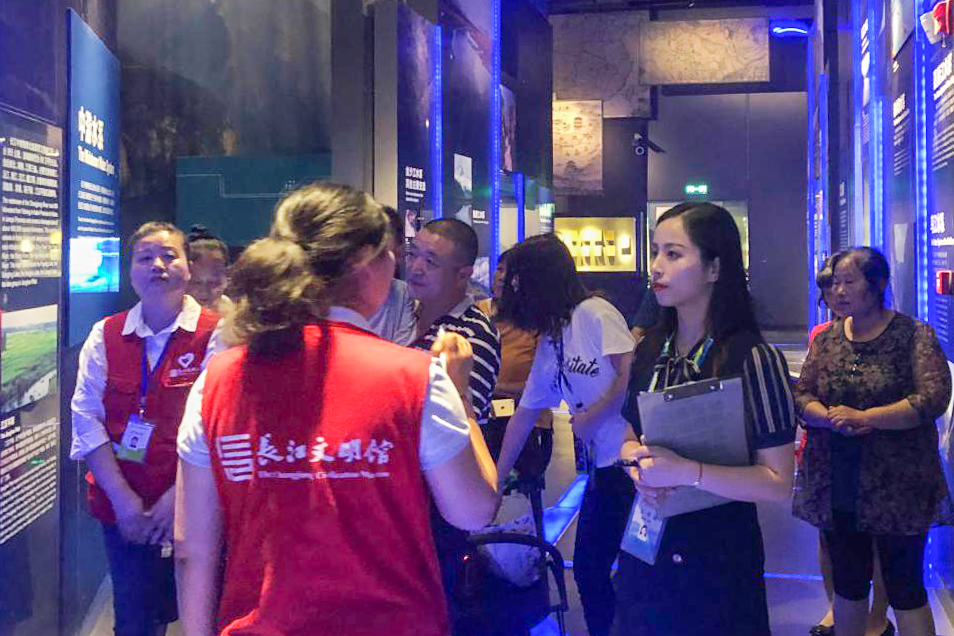 长江文明馆(武汉自然博物馆)讲解员团队,是一支特别的队伍,有“奖·姐·员”之称。目前13名讲解员,是各大讲解类比赛的拿奖常客,国家级大型展览如“伟大的变革——庆祝改革开放40周年大型展览”、“伟大历程 辉煌成就——庆祝中华人民共和国成立70周年大型成就展”也有她们讲解的身影。