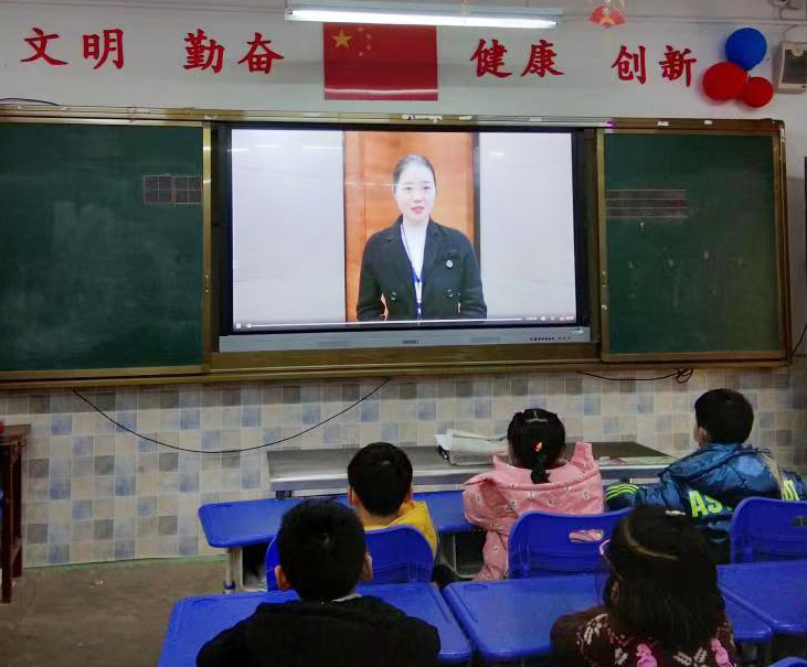 △青山区吉林街小学的学生们在收看本期大河讲堂,图片由青山区吉林街小学提供