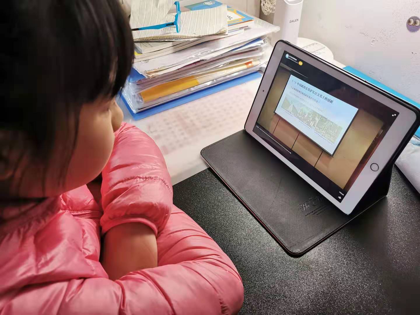 △在家收看本期讲堂的学生,图片由武汉市振兴路小学提供