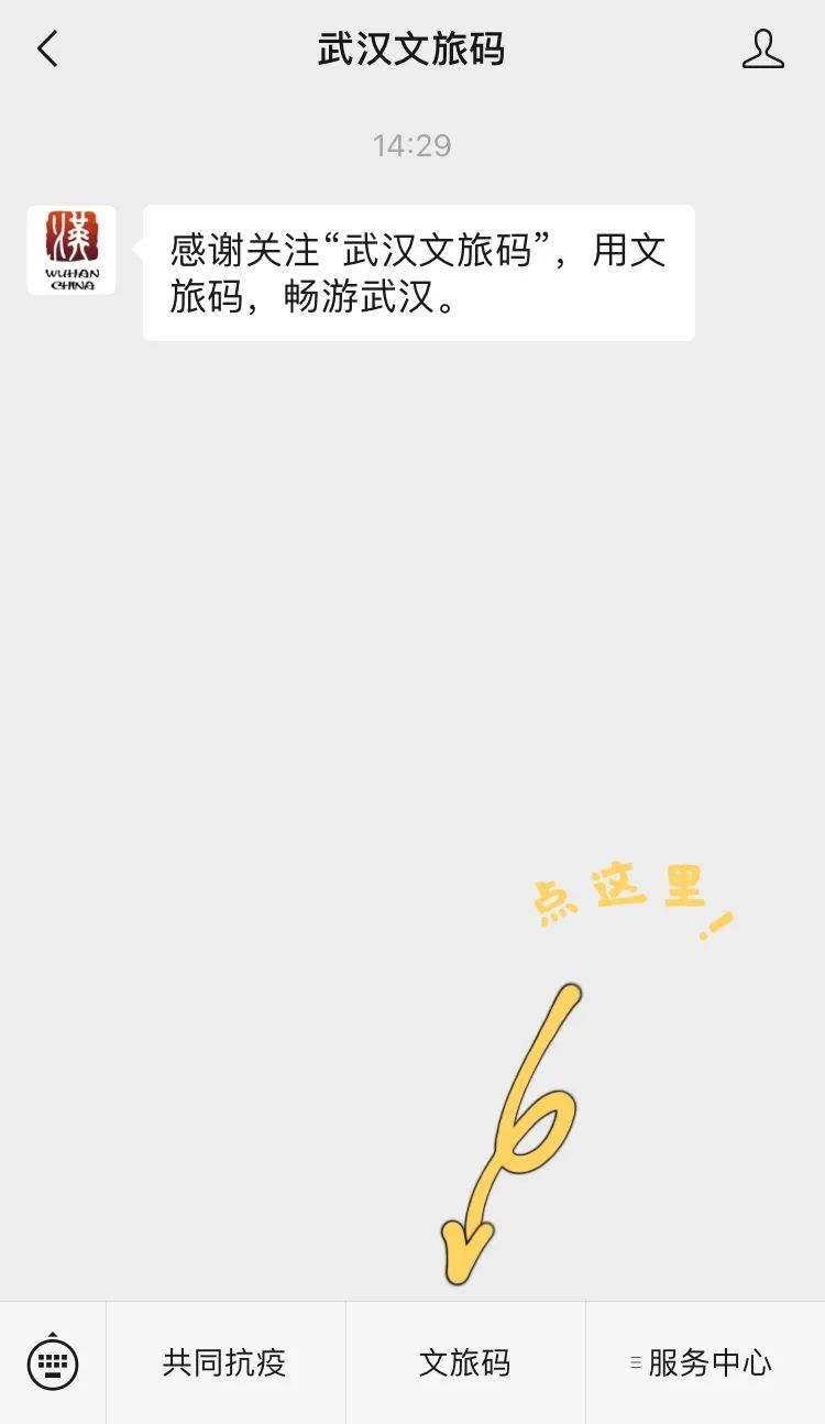 方法三:搜索并关注“武汉文旅码”微信公众号,点击下方菜单的“文旅码”,进入小程序。