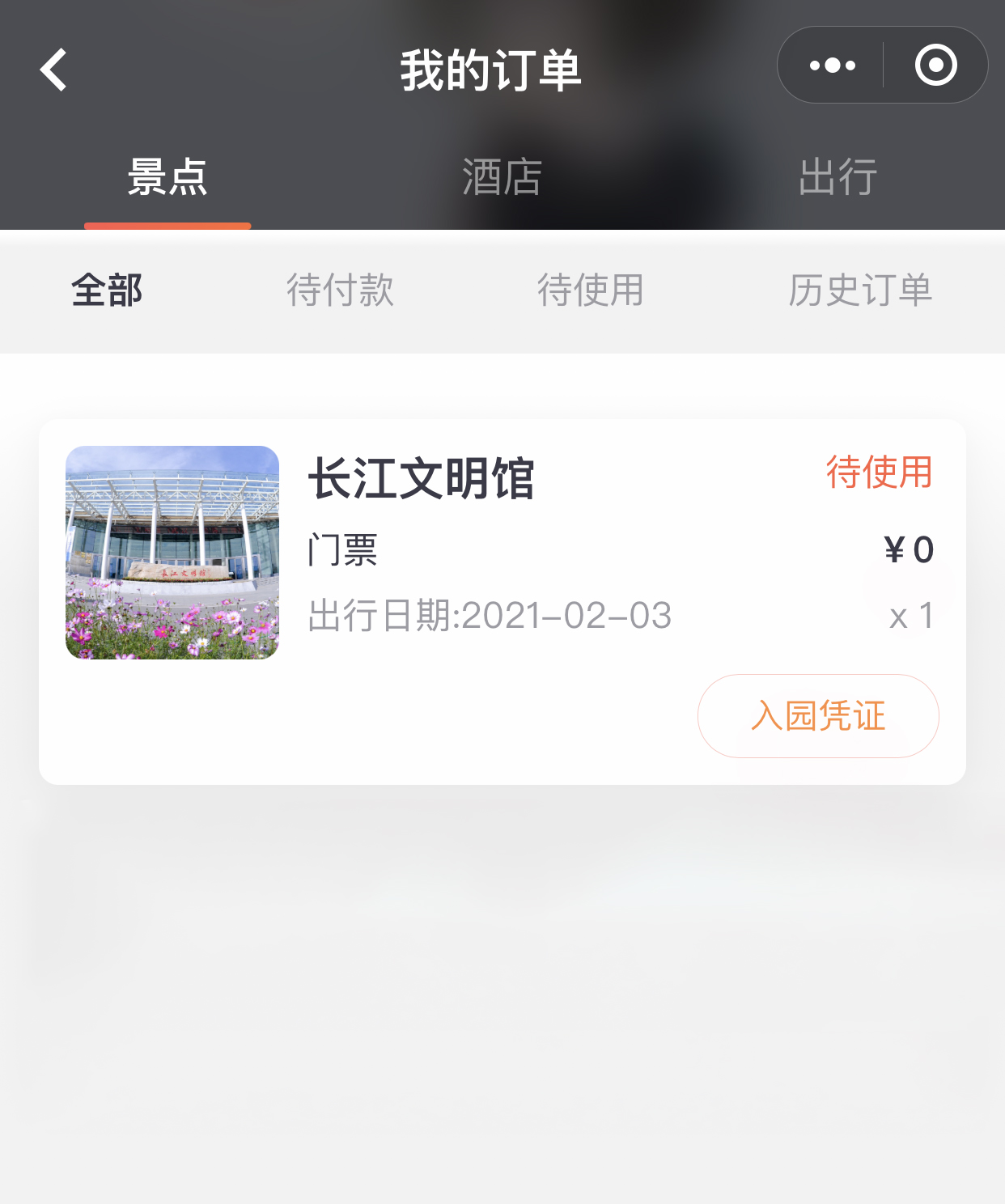完成预约后,在「我的订单」中找到相应订单,凭「入园凭证」入馆参观。