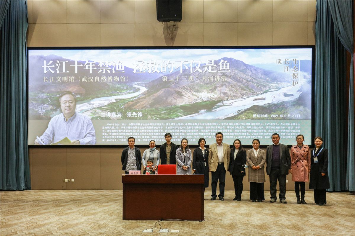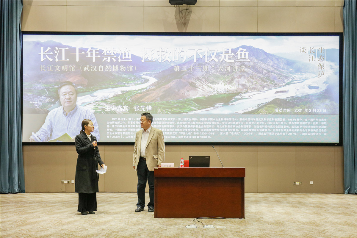 2月23日下午,第二十三期大河讲堂在长江文明馆(武汉自然博物馆)开讲,中国科学院水生生物研究所研究员,博士研究生导师,中国科学院水生生物博物馆馆长,中国科学院武汉科学家科普团团长张先锋以“长江十年禁渔,拯救的不仅是鱼——谈长江生态保护”为主题,围绕“丰富多彩的长江水下世界”、“长江病了,长江‘无鱼’导致长江‘无渔’”、“长江生物多样性保护措施”、“长江禁渔不仅仅是救鱼”等四个方面内容,从生态学的角度谈长江生态保护,引领大家认识长江大保护战略,影响广大民众积极参与进来,共同保护长江生物多样性和长江生态环境。