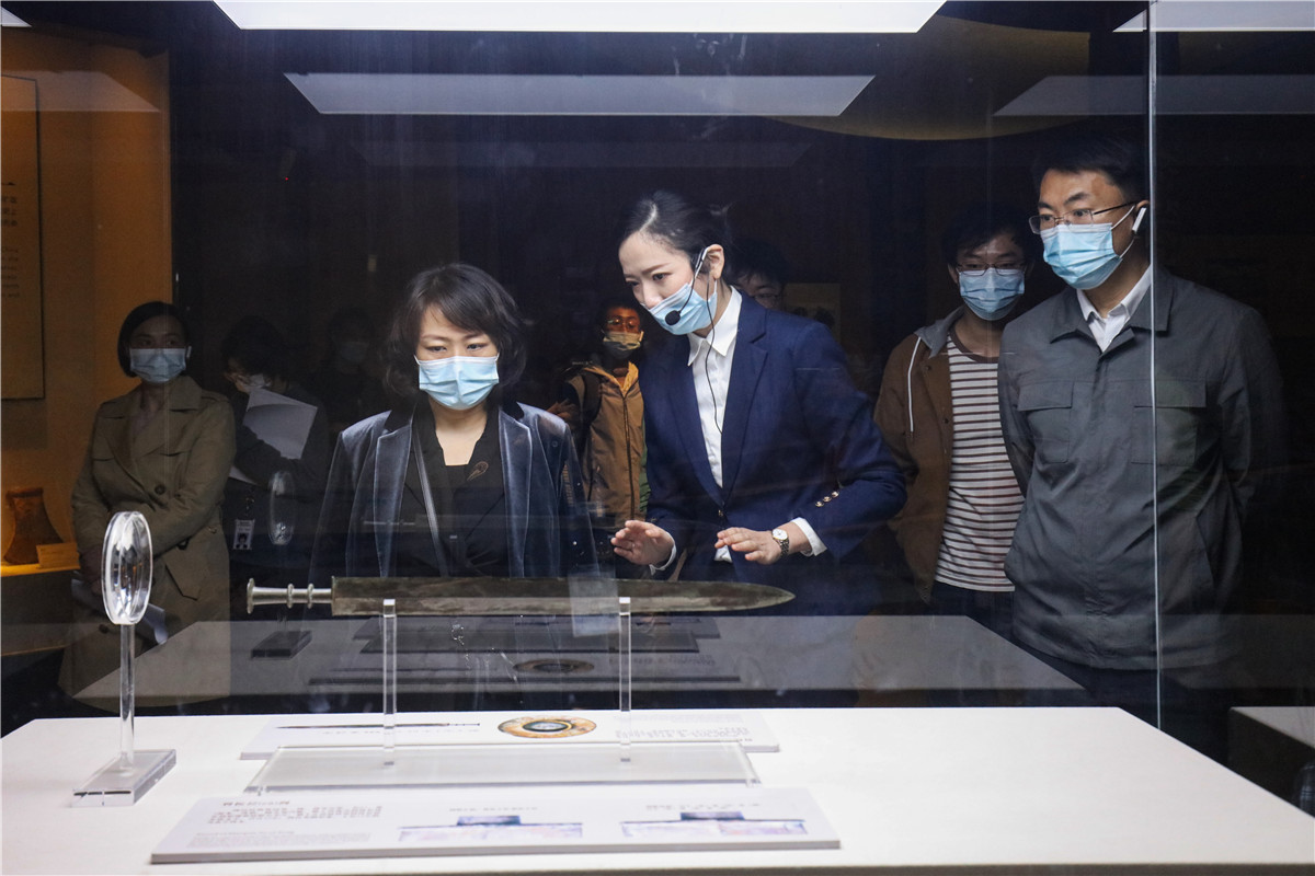 湖北省文化和旅游厅博物馆与社会文物处处长、一级调研员官信,副处长王晶晶,武汉市文化和旅游局副局长张宏斌、博物馆处副处长程敏,长江文明馆(武汉自然博物馆)馆长李淑云、副馆长张肖雯陪同调研。
