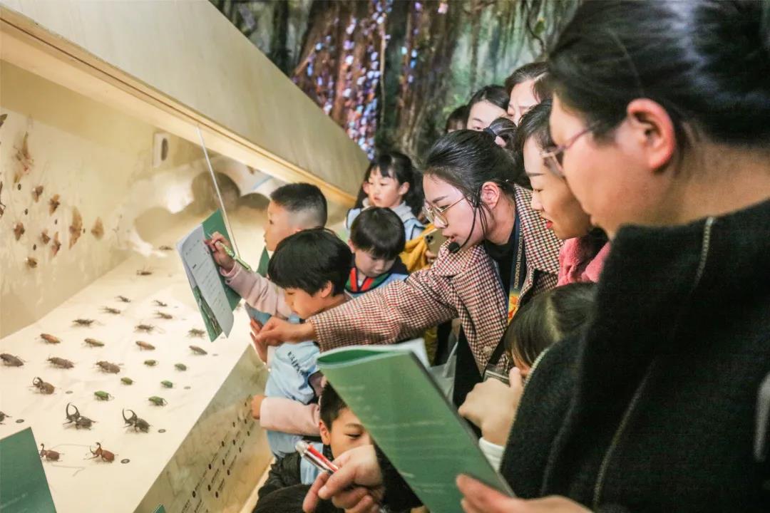 展厅深入学习:研学导师带领大家参观昆虫展区,识别昆虫的种类与习性等基本信息
