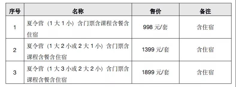 夏令营价格