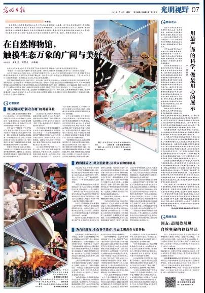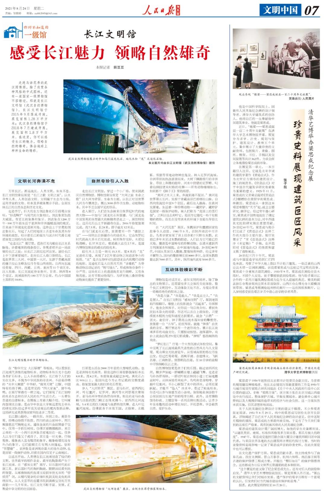 这是今夏长江文明馆(武汉自然博物馆)第二次登上央级主流媒体。此前7月19日,《光明日报》曾以“在自然博物馆,触摸生态万象的广阔与美好”为题,简要报道了自然博物馆中“长江中下游的森林环境与野性山林”展示情况。