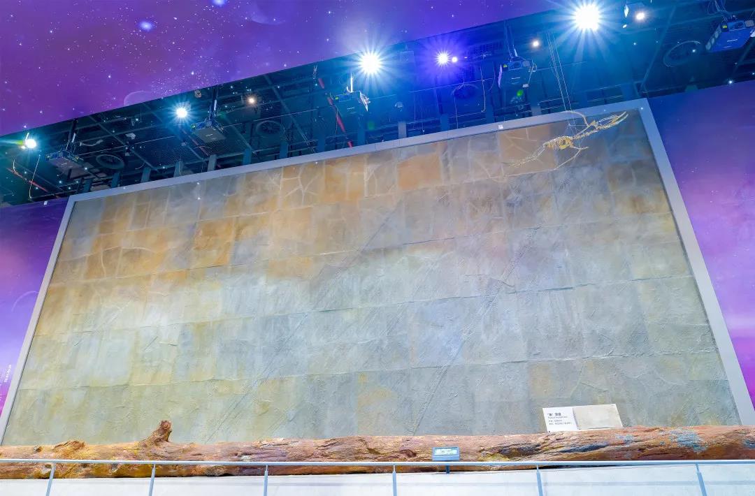 硅化木上方是一面长15.3米、宽8米的“龙”足迹化石墙,再现了2亿年前动物之间追逐争斗的场面。“龙”是古生物学对包括恐龙在内的爬行动物的统称。足迹化石是大自然用天然“录像机”为脊椎动物活动记录的“特写镜头”,形成和保存条件十分严苛。这块化石上的遗迹既有龙行湖畔,又有鱼翔浅底,还有节肢动物爬行,为研究晚三叠世脊椎动物演化提供了重要资料。