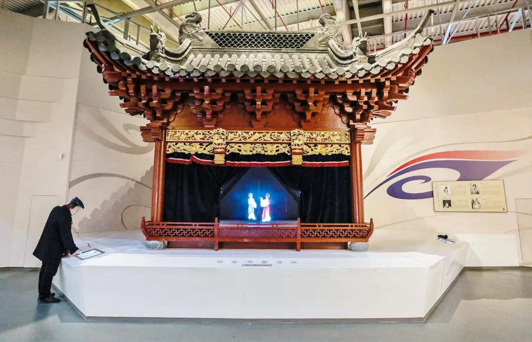 “ 我是古猿。”“我是能人。”“我是直立人。”“我是智人。”在长江文明馆“感知文明”厅,踩到地面的四组脚印,墙壁上的投影就会“活起来”,你挥挥手,他也会挥挥手,对你说一句自我介绍。看到先民钻木取火的场景,你还可以亲自上前体验,只要揉搓木棍的力度和速度达到要求,就会“点燃”一团火。俞伯牙、钟子期高山流水遇知音的雕塑旁,放置着一台“古琴”,轻抚琴面,就能“弹奏”出优美的音乐。展厅里还有一个迷你戏台,展示长江流域多彩的戏曲文化。只要按动按钮,选择剧种,戏台上就会出现270度幻影成像,“演唱”悠扬婉转的戏曲。
