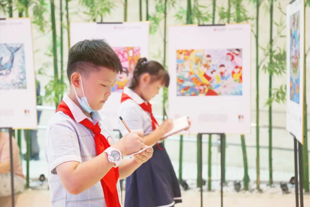 在颁奖仪式上,40幅馆藏作品的原画作首次集中与大家见面,部分作品的作者还分享了创作心得。一幅幅色彩缤纷,充满表现力的画作,展示了作者们对于长江的丰富想象力和创造力。色彩斑斓、创意丰富的绘画作品吸引了众多观众 驻足观赏。