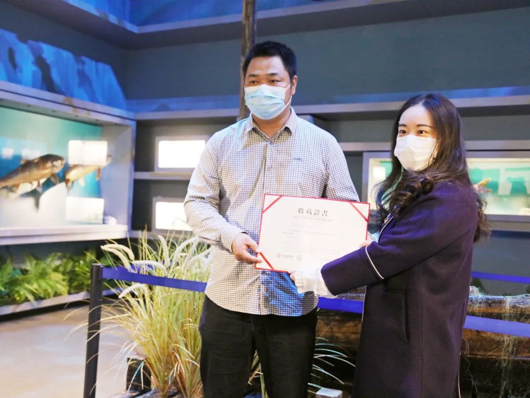 10月22日下午,长江文明馆(武汉自然博物馆)长江十年禁渔计划见证物捐赠仪式在长江文明馆走进长江厅第八单元举行。长江文明馆(武汉自然博物馆)张肖雯副馆长向江夏区农业农村局、江夏区南北咀综合开发总公司代表颁发收藏证书。