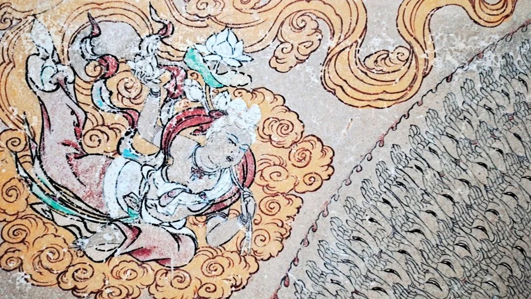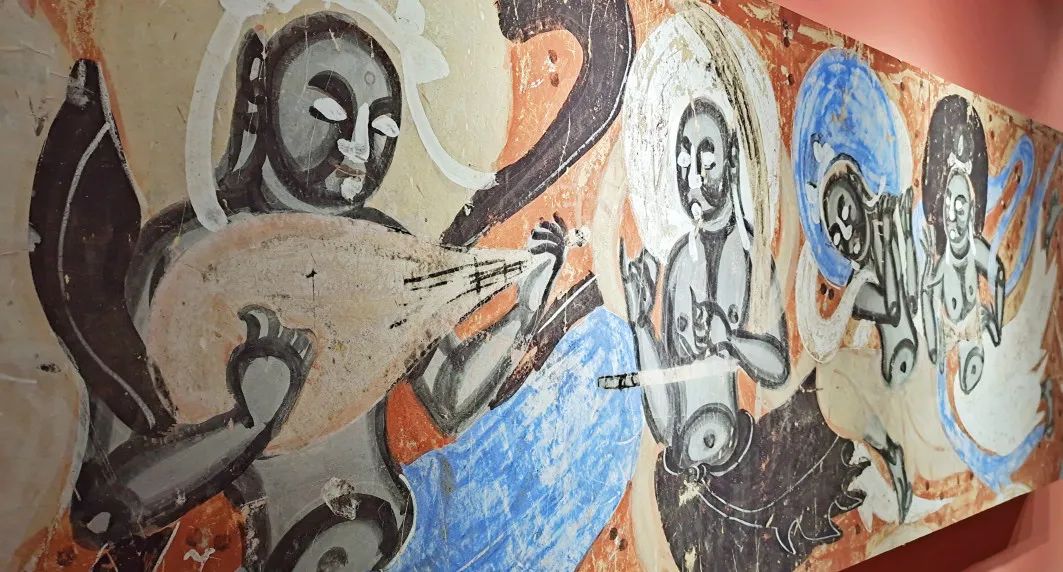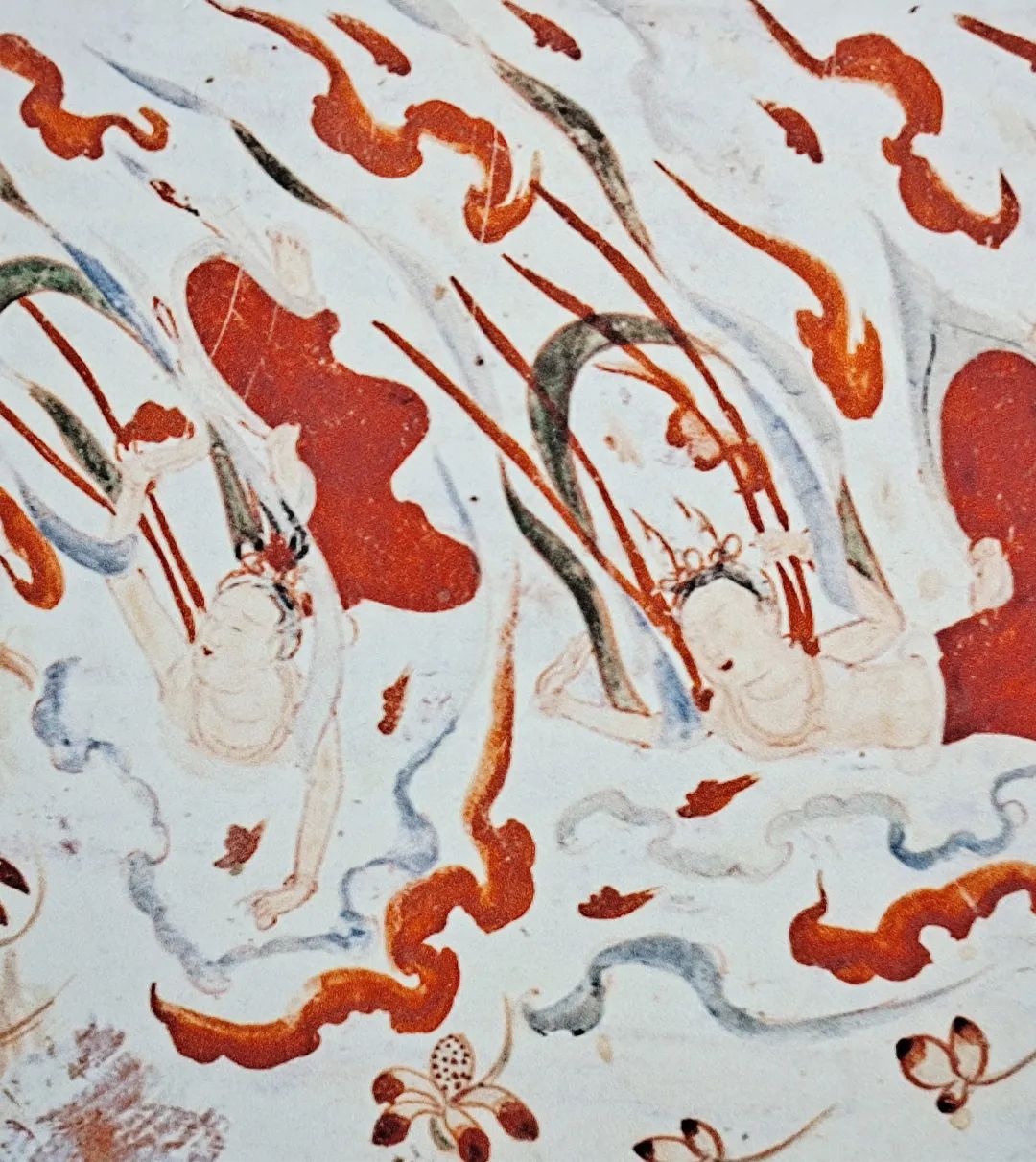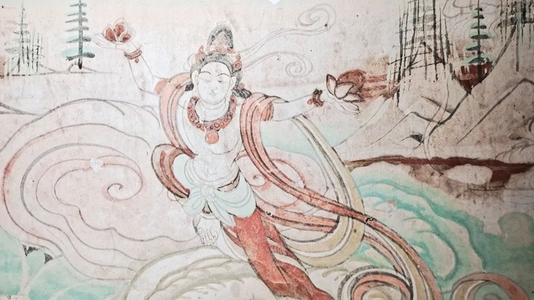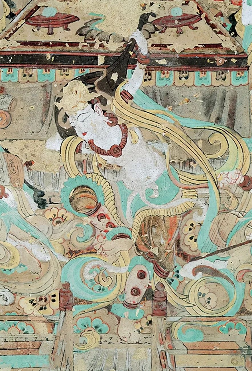 每当佛陀讲经说法,以及最后涅槃之时,飞天们都会凌空飞舞,奏乐散花。佛教传入中国后,飞天能歌善舞的特点更加突出了,伎乐飞天成为敦煌石窟的主题。其乐器、舞姿、服饰,也逐渐演变成中国传统的元素。