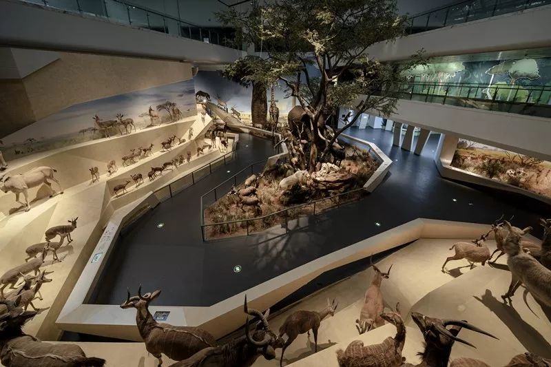武汉自然博物馆是全国乃至世界范围内首座以世界十条大河流域生物多样性为展示主题的自然类博物馆,包含序厅、大河沧桑、大河珍灵、大河沉思和大河探秘五大展区,以及一座4D影院,展览面积1.8万平方米,常设展览“大河之旅 生命之歌”以大河为背景、以生命为主题、以长江对话世界大河为布展理念,充分利用近3000件古生物、动植物标本和现代多种展陈手段,展示世界代表性大河的生物多 样性、联系性与差异性。两馆拥有藏品11000多件,截至2021年底,共免费接待观众约790 万人次。