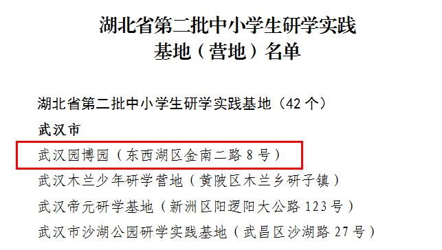 2022年2月,武汉园博园(武汉自然博物馆)迎来虎年三个重要奖项:被评为全国科普教育基地、湖北省科普教育基地、湖北省第二批中小学生研学实践教育基地。