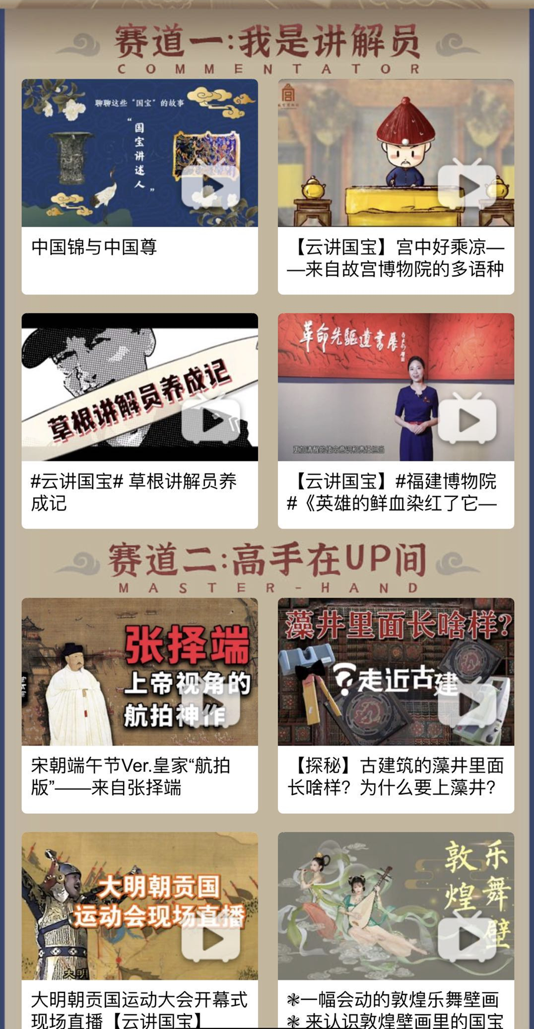 活动于5.18国际博物馆日当天正式启动,共有来自28个省(区、市)的242家博物馆选派代表参赛。7月8日,入围名单出炉,经过评委们的项目评议、实名投票,共有32位专业赛道选手、32个业余赛道Up主提供的视频入围复赛。