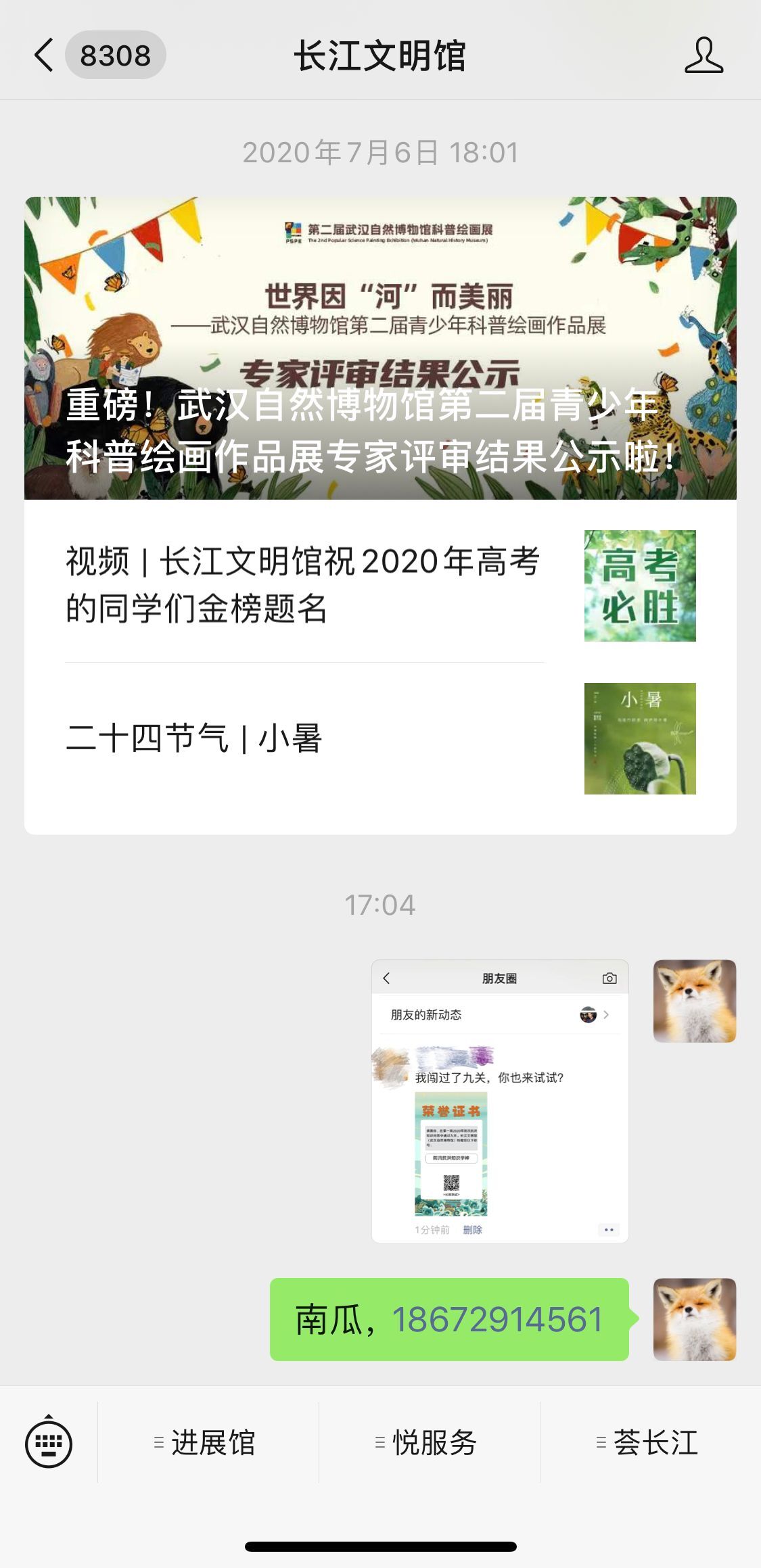 将朋友圈截图发至“武汉自然博物馆”微信公众号后台,并留下姓名及有效联系方式