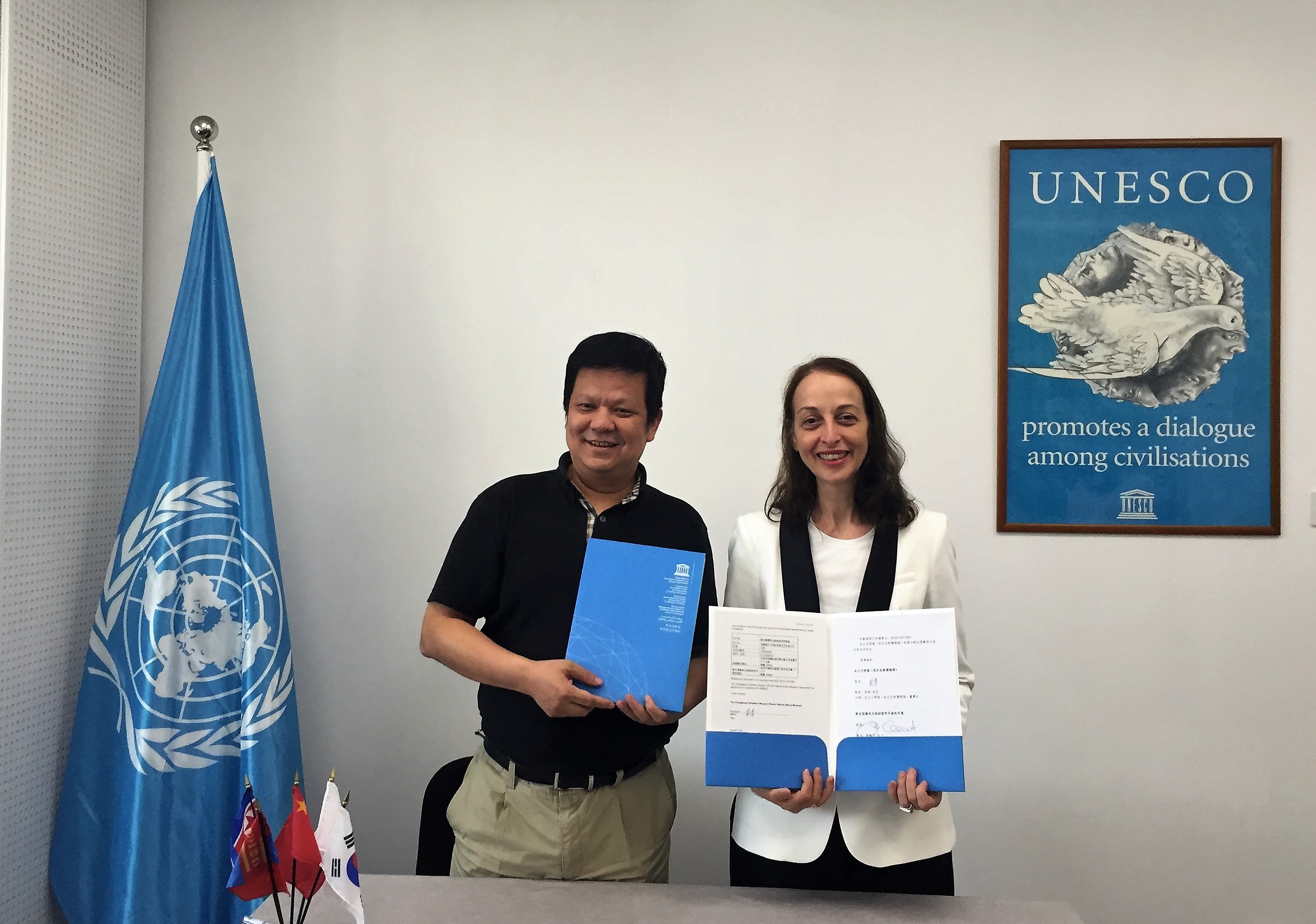 8月31日,联合国教科文组织驻华代表处与长江文明馆(武汉自然博物馆)签署合作协议,正式开启2018年及2020年“大河对话”国际论坛的相关合作。协议签字仪式在教科文组织驻华代表处北京办公室举行。本次合作得到了武汉市人民政府的高度重视和大力支持。