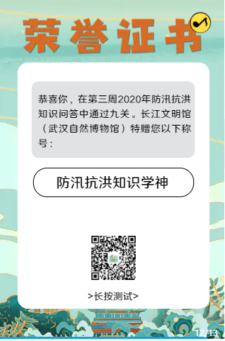 长江文明馆(武汉自然博物馆)2020年防汛抗洪知识有奖问答