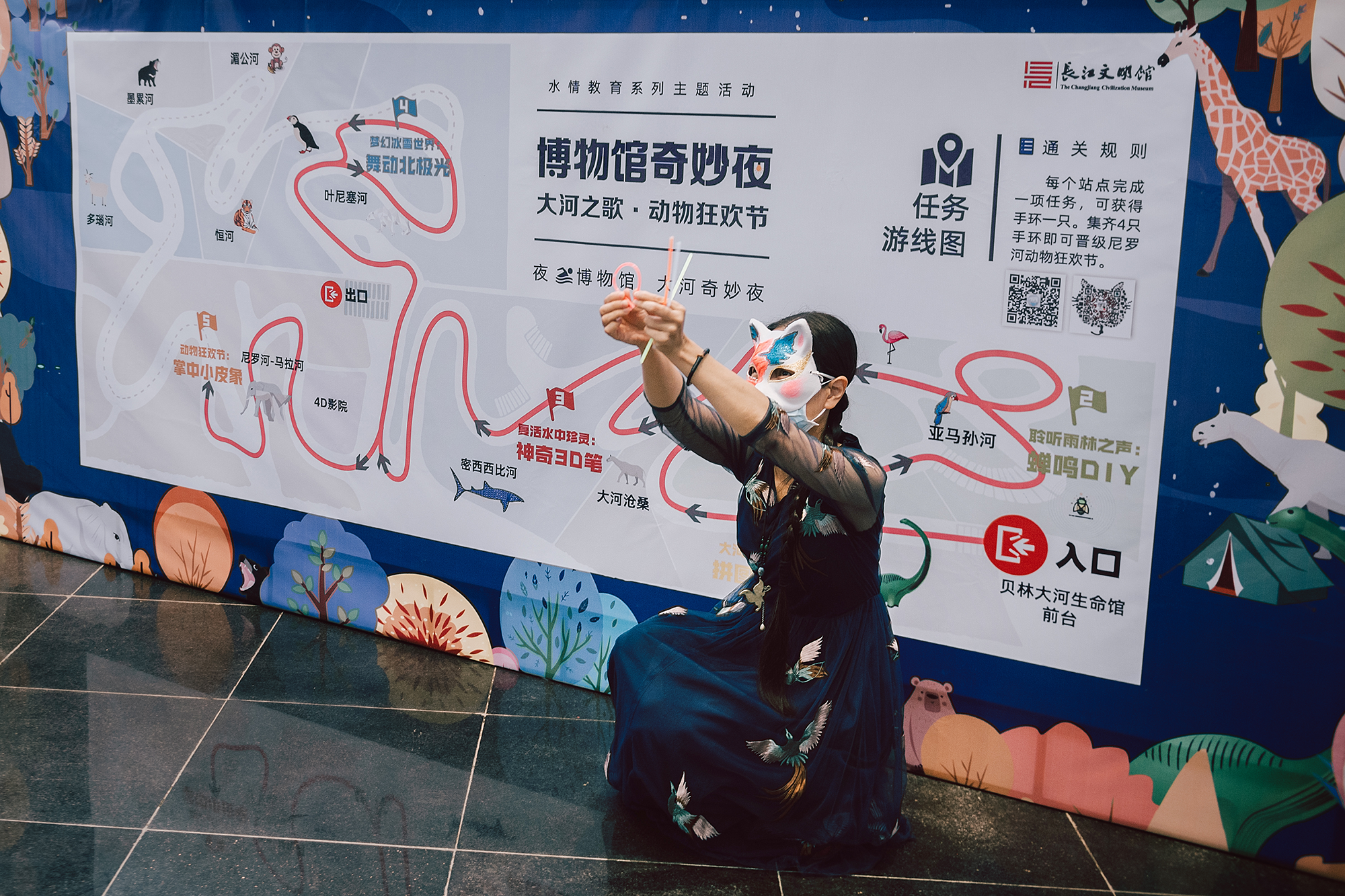 8月8日晚,一场以“大河之歌·动物狂欢节”为主题的博物馆奇妙夜活动在武汉园博园自然博物馆炫酷登场。