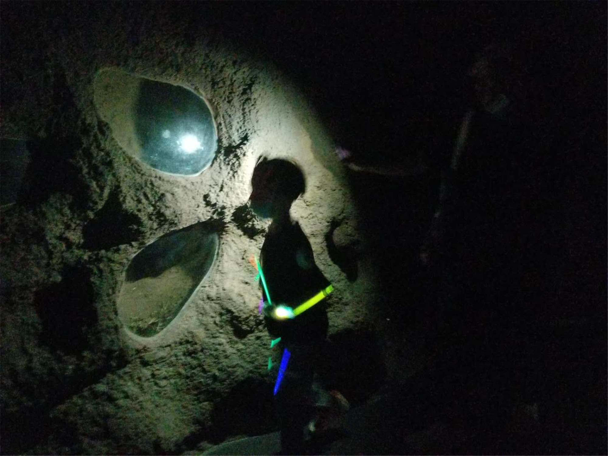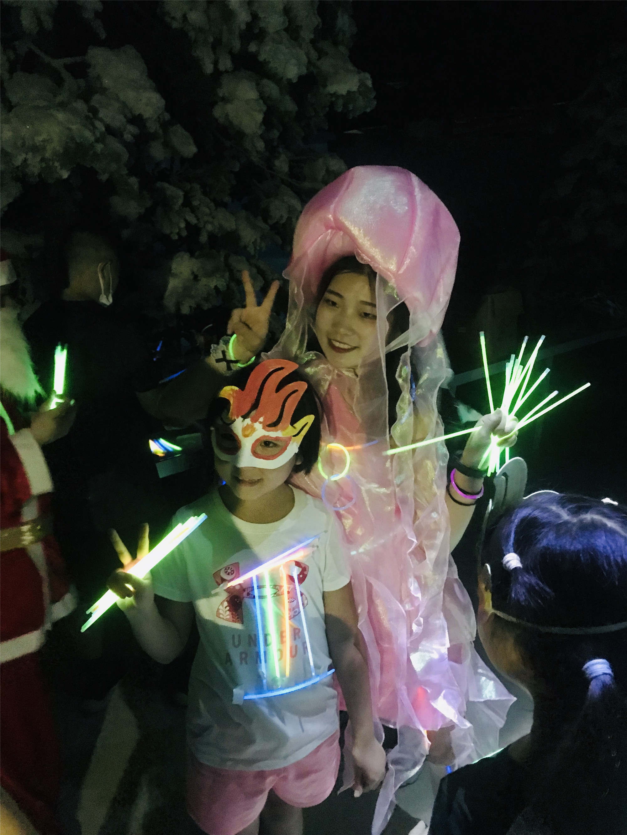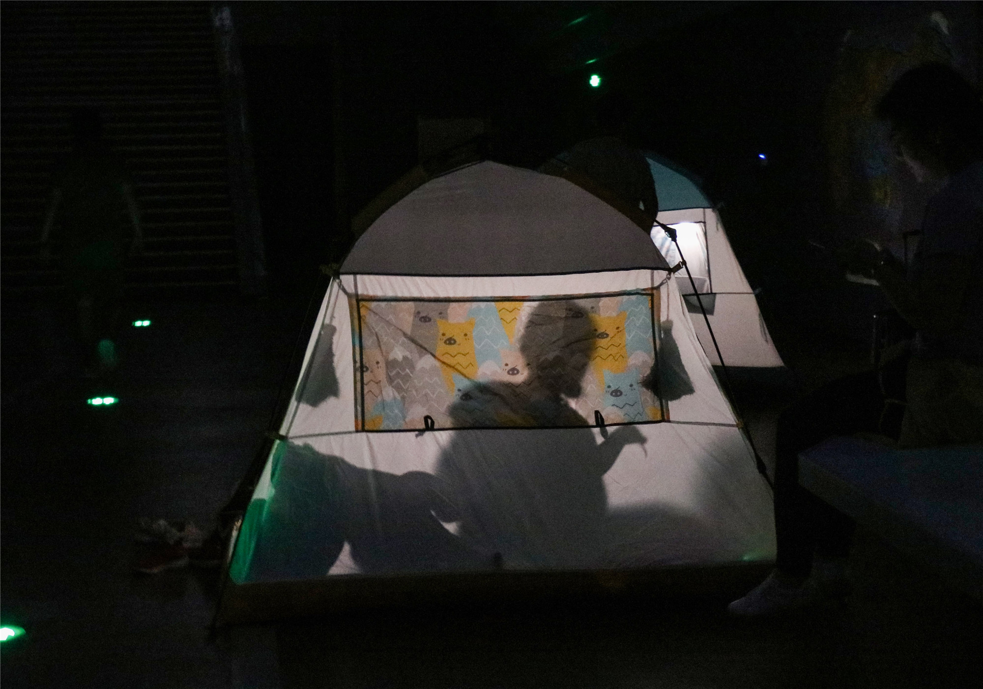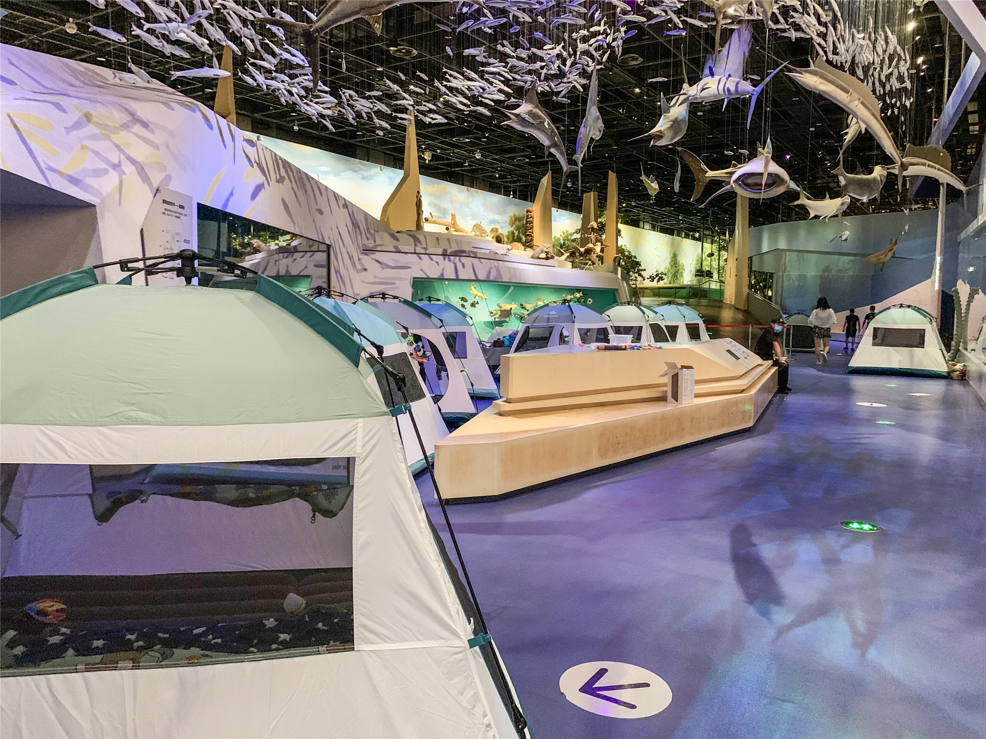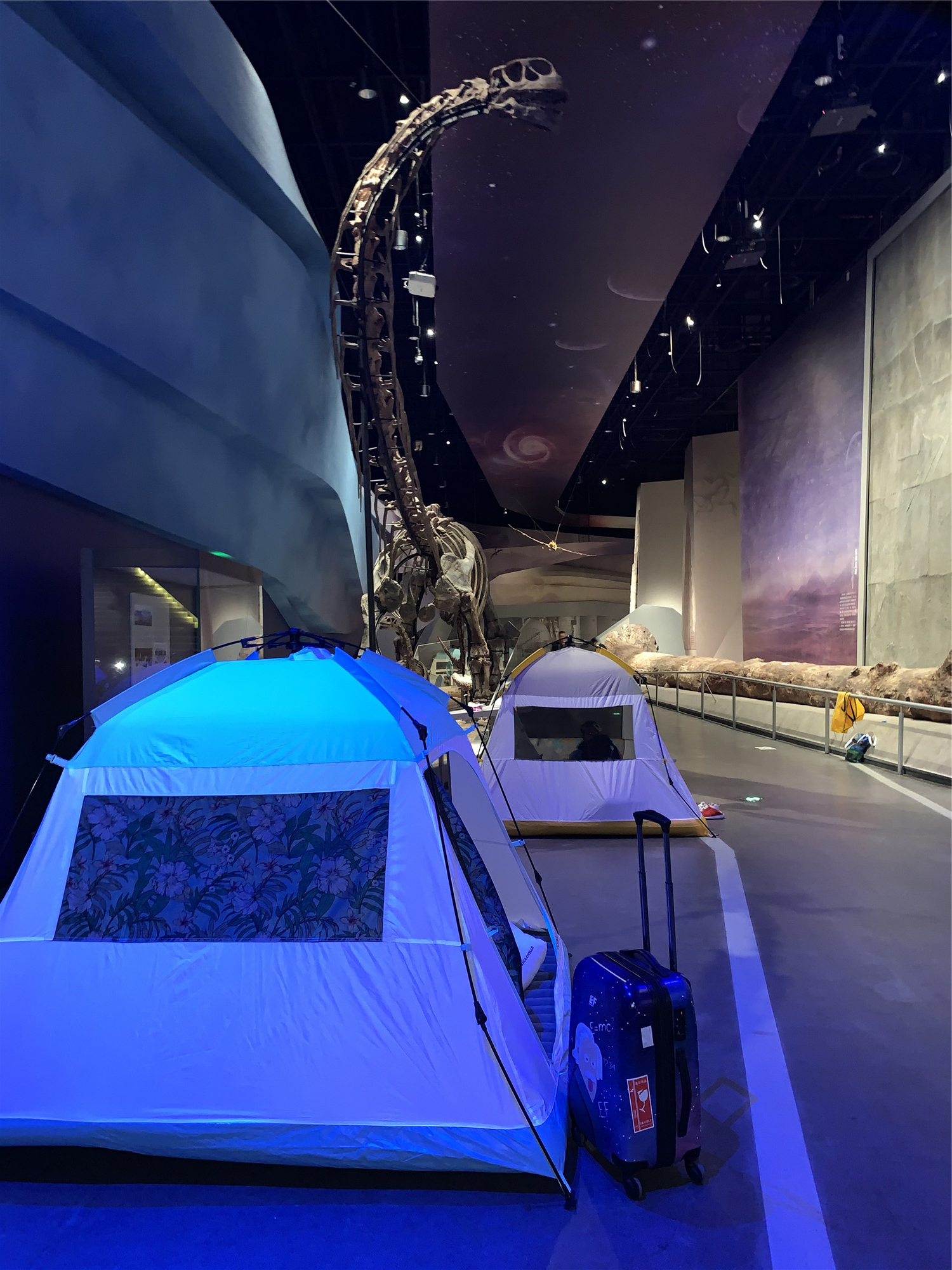 夜宿区域,一只超级恐龙正慢慢地靠近帐篷……孩子们的尖叫声、欢呼声,不绝于耳。