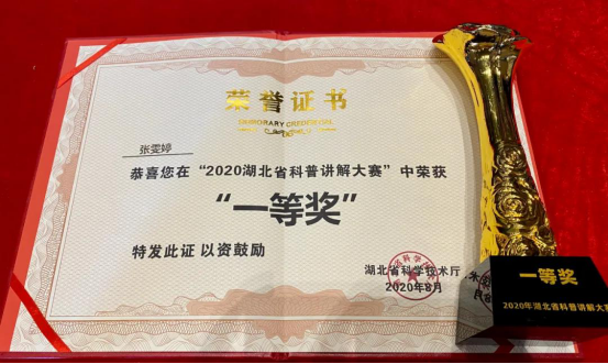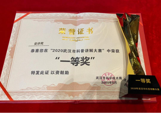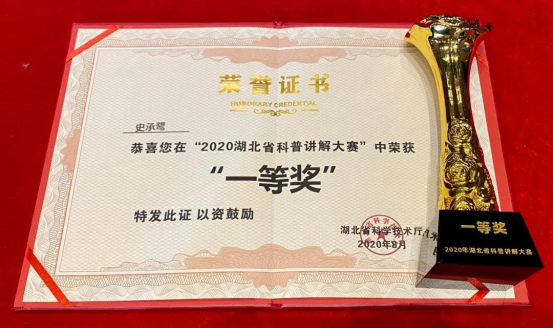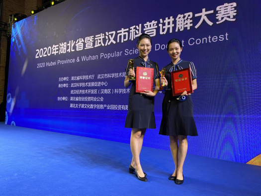 2020年湖北省暨武汉市科普讲解大赛由湖北省科学技术厅、武汉市科学技术局主办,由武汉科学技术发展促进中心、武汉经济技术开发区(汉南区)科学技术和经济信息化局承办。大赛设省级奖和市级奖,湖北省范围内约有100名讲解员参与初赛,选出30名进入决赛,我馆讲解员张雯婷以“科技战疫,中国力量”、史承鹭以“山林卫士穿山甲”参赛,极具创意的科普主题以及精彩的讲解让她们在大赛中脱颖而出,双双斩获比赛大奖。
