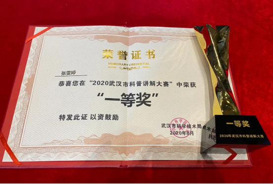 8月26日,2020年湖北省暨武汉市科普讲解大赛颁奖仪式在武汉南太子湖创新谷美术馆举行,长江文明馆(武汉自然博物馆)讲解员张雯婷、史承鹭双双获得大赛省、市双一等奖。