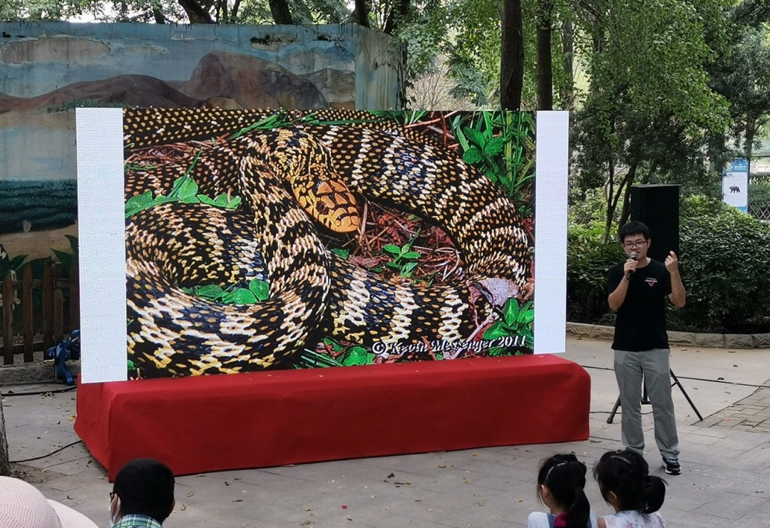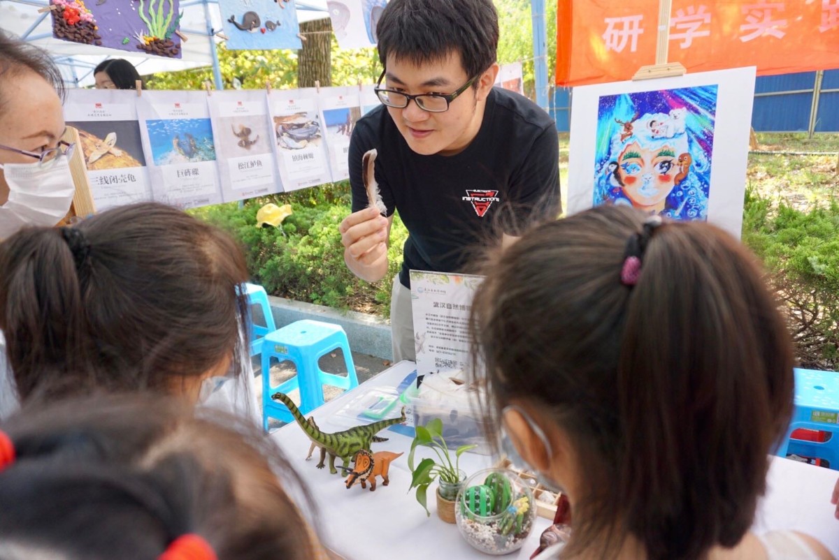 我馆参与了活动的自然市集、自然导师课环节,现场开展了岩石奇遇记、神奇羽毛、会变身的水、濒危水生生物画展等互动体验课程35场,接待游客近千人,还进行了文创产品展销。此外,由研学导师胡恺主讲的“毒蛇与无毒蛇”自然导师课在支付宝小程序“野生小伙伴”、武汉广播电视台见微直播、央视频等平台直播。
