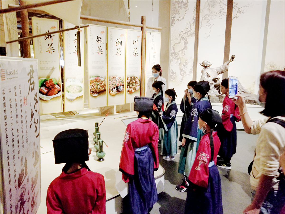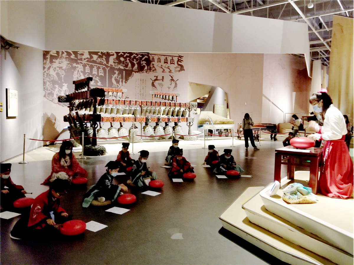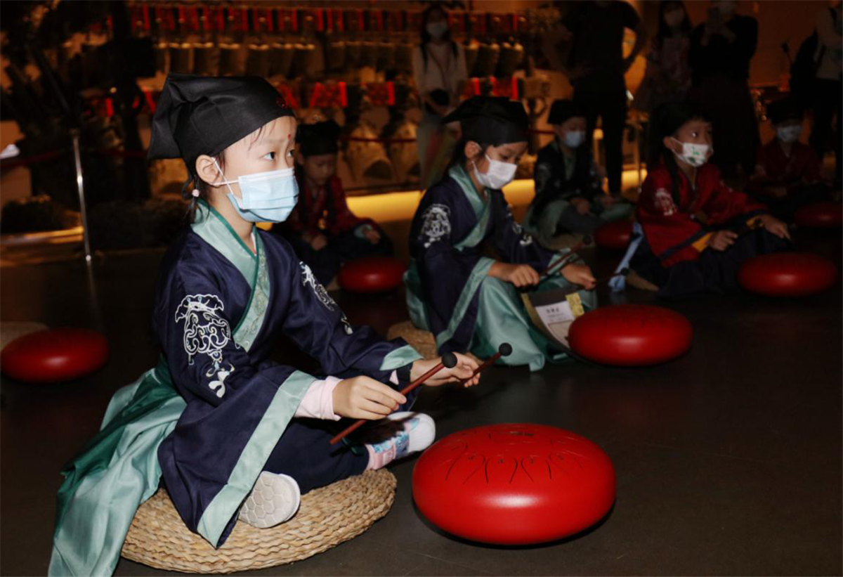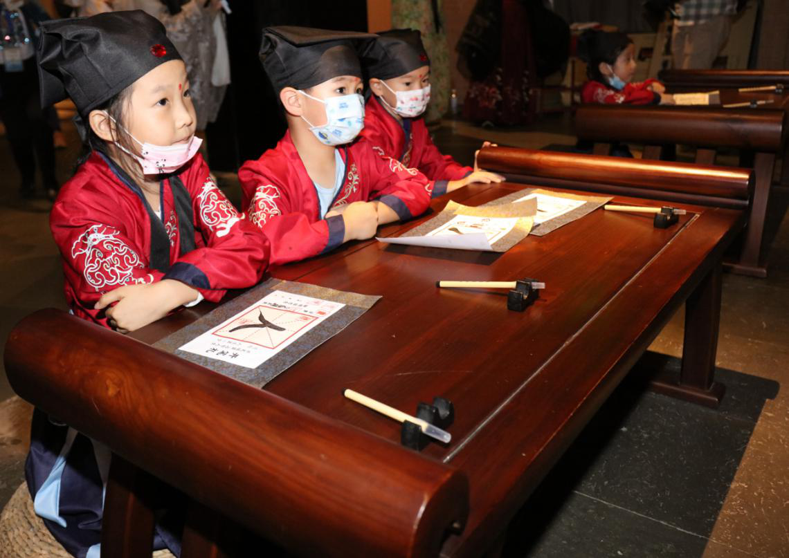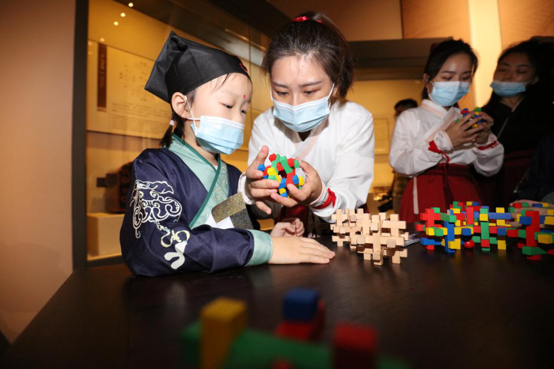 9月19日下午2时许,武汉园博园长江文明馆感知文明厅传来《弟子规》的朗朗诵读声。20余名小朋友和家长身着汉服,穿越时空,在岳麓书院“山长”的教授下,学礼、击乐、投壶、御驾、书扇、合榫,研习“君子六艺”,沐浴国学之风,体验中华传统文化魅力。