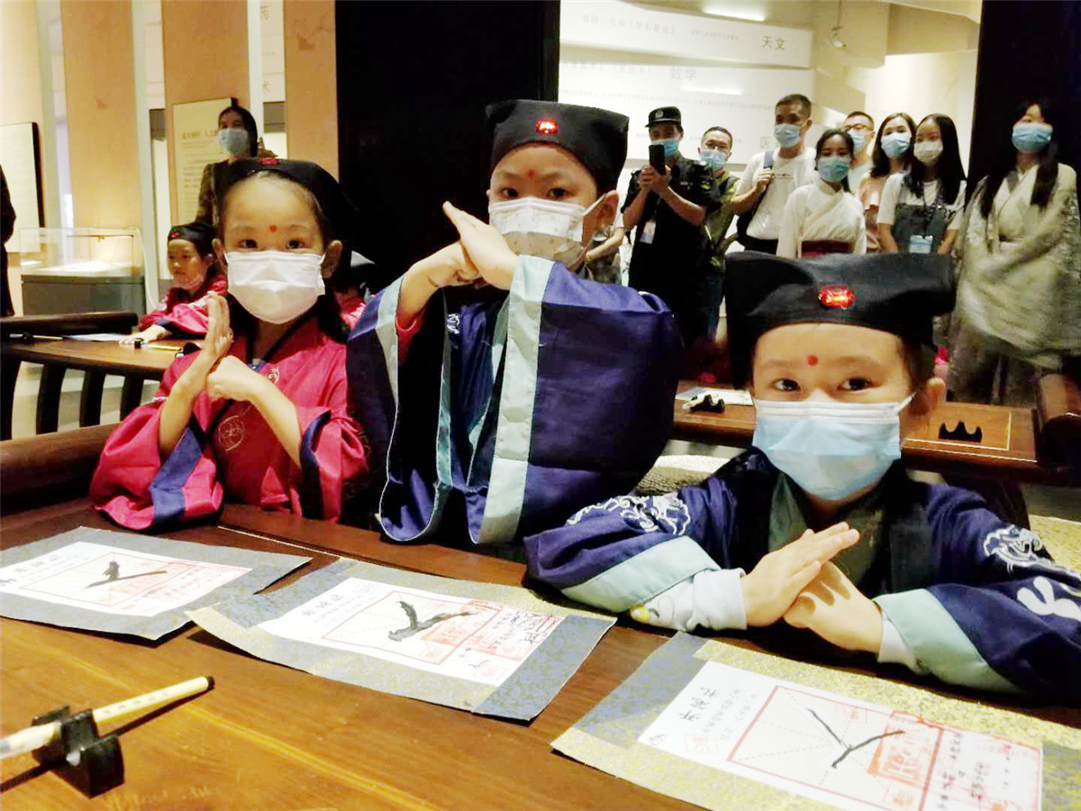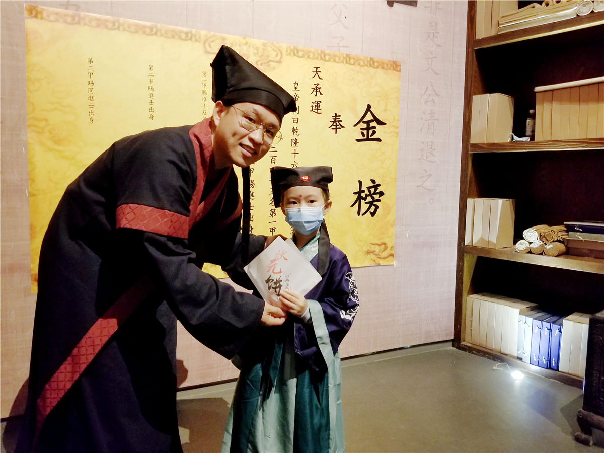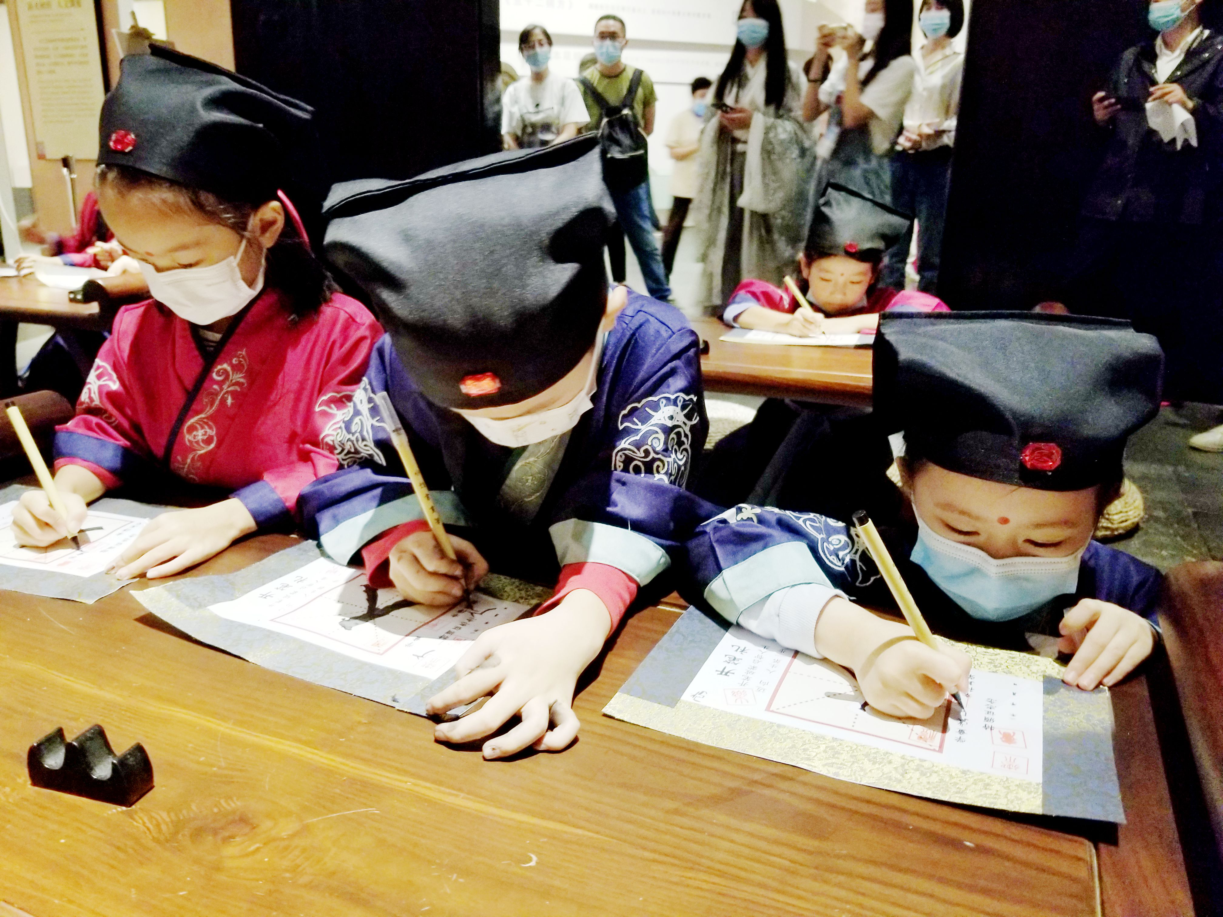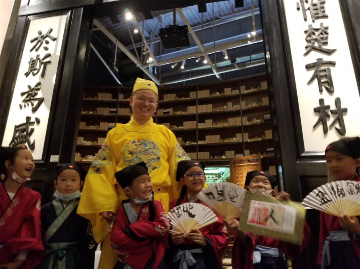 开笔礼成 礼成后,学童们谢“山长”,领取六艺科考任务,跟随“夫子”开始闯关。