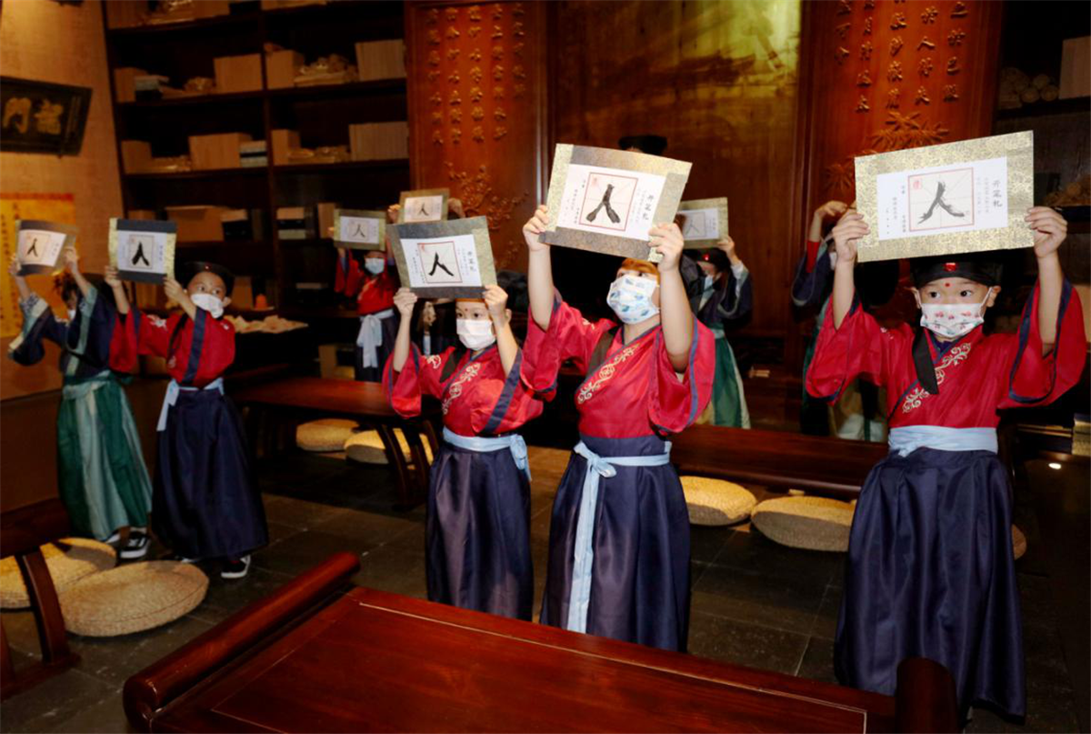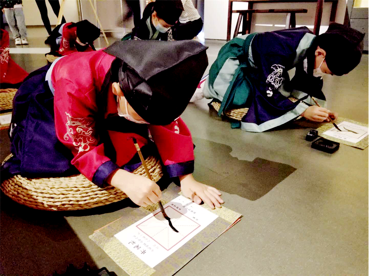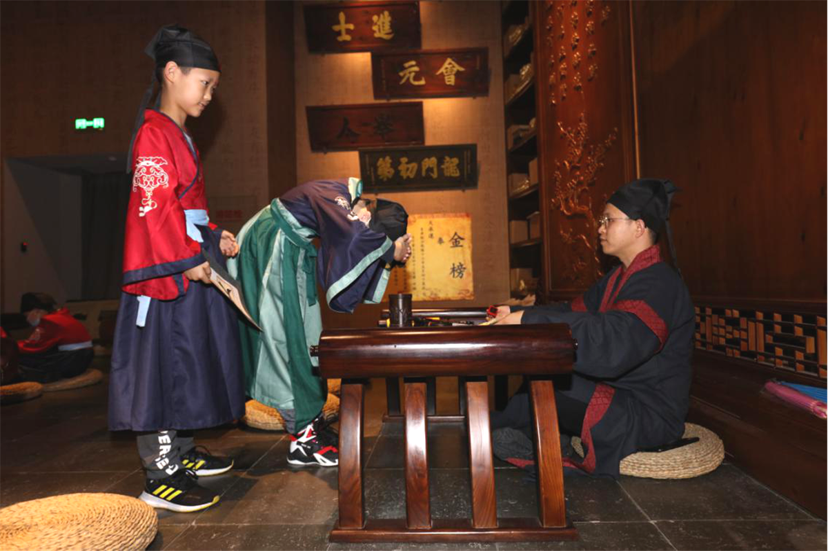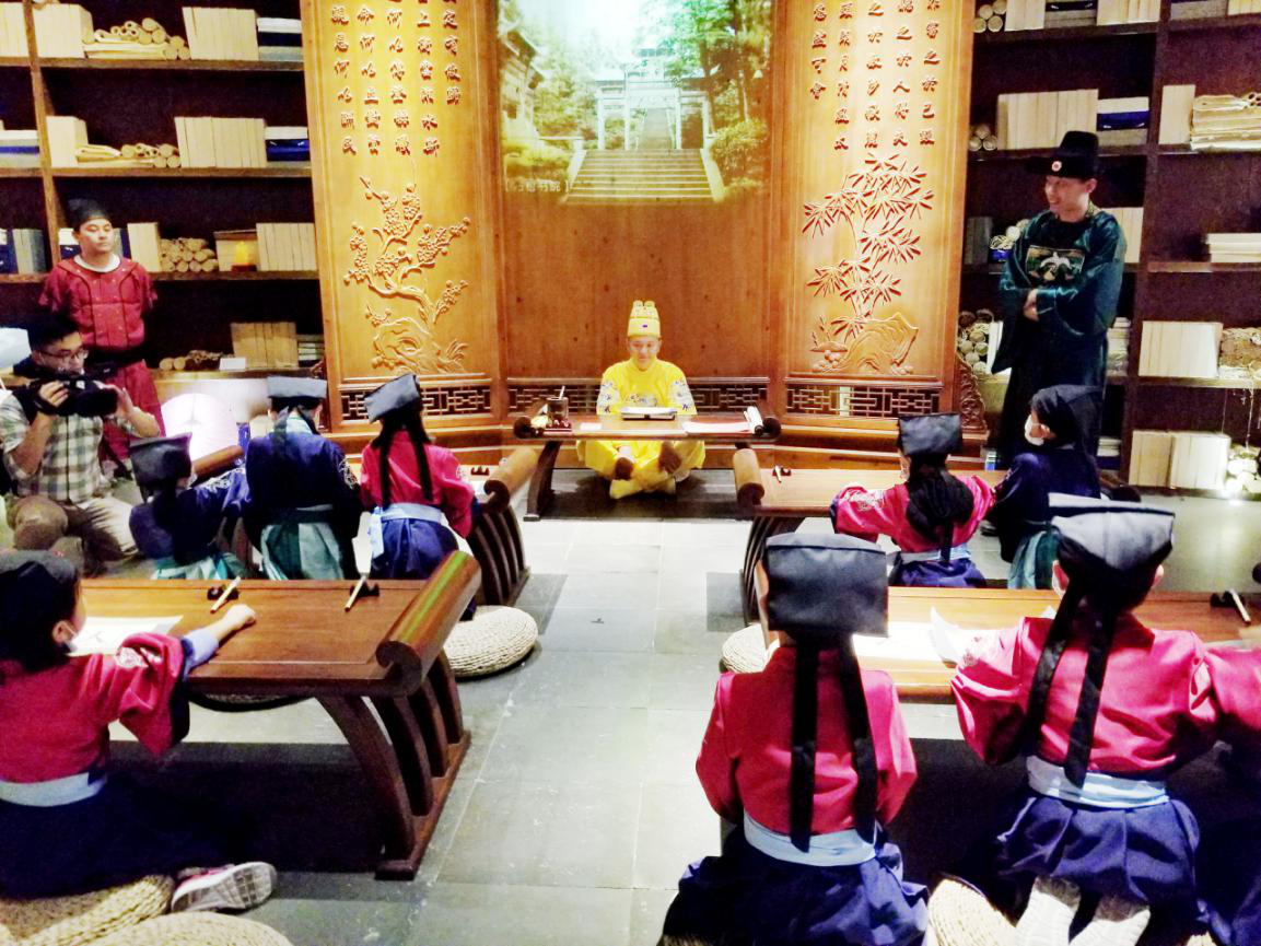 开笔礼成 礼成后,学童们谢“山长”,领取六艺科考任务,跟随“夫子”开始闯关。
