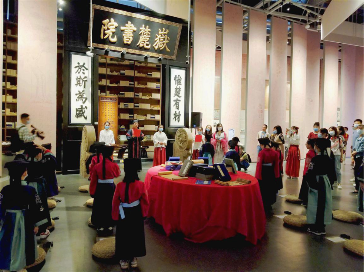 长江文明馆副馆长李进说:“9月17日,习近平总书记走进千年学府岳麓书院,考察湖南大学传承弘扬优秀历史文化情况,勉励莘莘学子,不负时代重托,不负青春韶华。当天,我们正在长江文明馆岳麓书院展区进行“君子六艺”活动彩排,这也许是巧合,但都寄托着对下一代的期许。