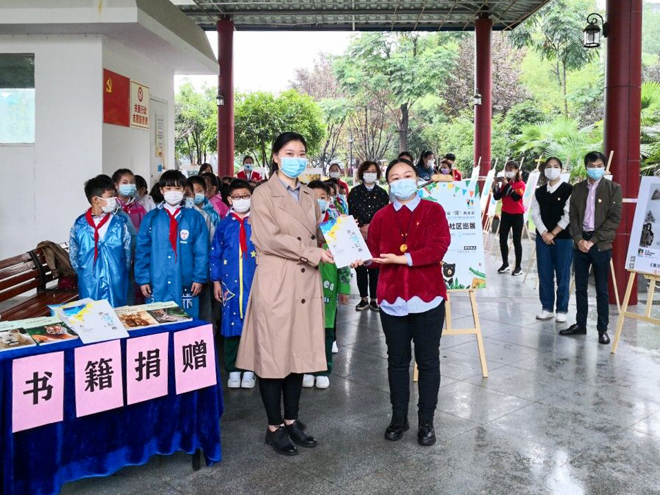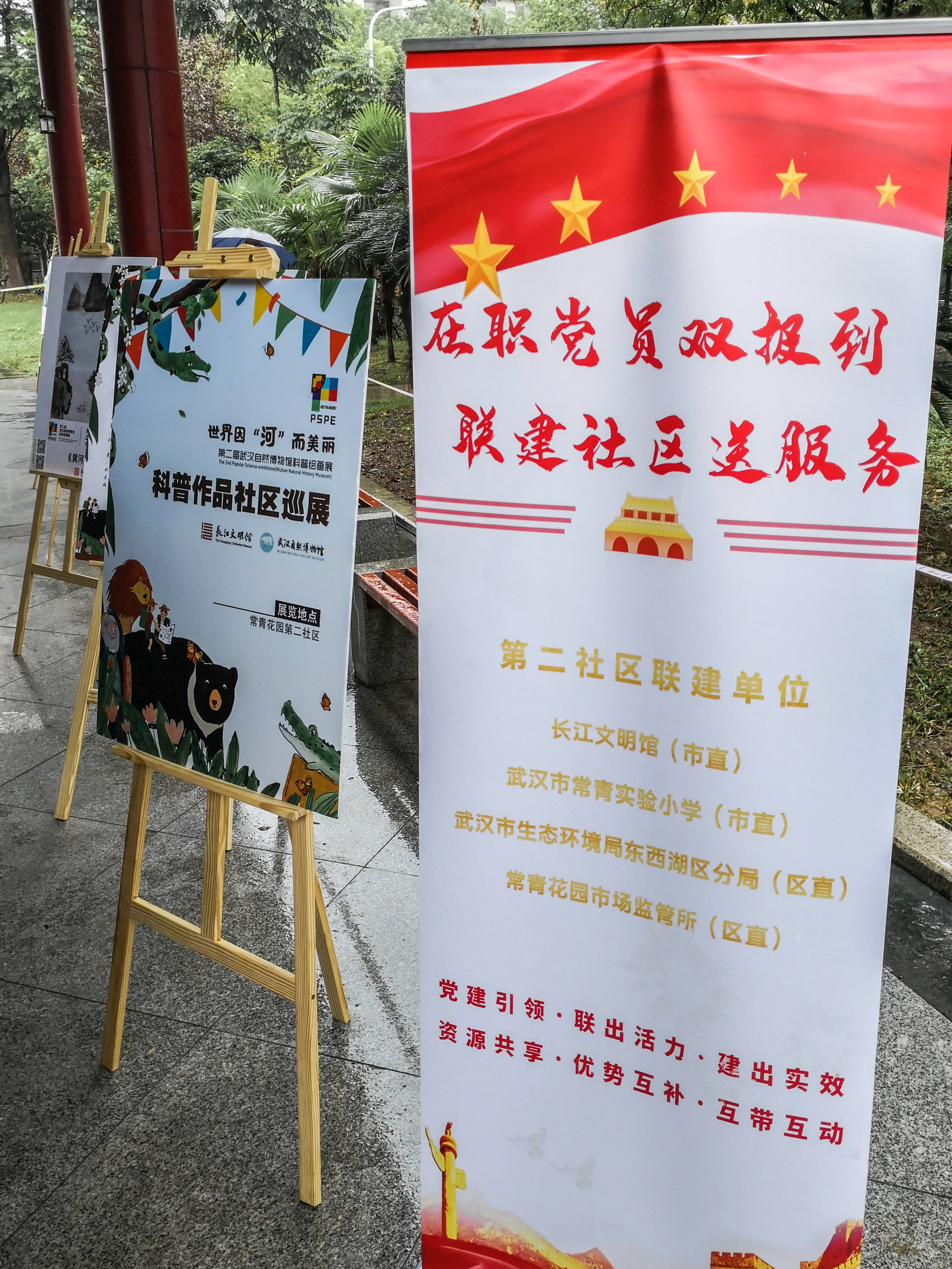 九月是全民科普教育月,为丰富社区居民文化生活,传播自然科普知识,长江文明馆(武汉自然博物馆)与常青花园第二社区共同开展了此次活动,同时,长江文明馆(武汉自然博物馆)展览陈列部负责人李银松代表馆方向社区书屋捐赠了一批包括《河畔珍灵》系列在内的馆藏书籍。为让观众更好地参观巡展,馆方志愿者讲解员在现场为参观的大小观众们生动地讲述了展览作品背后的故事及相关流域知识。
